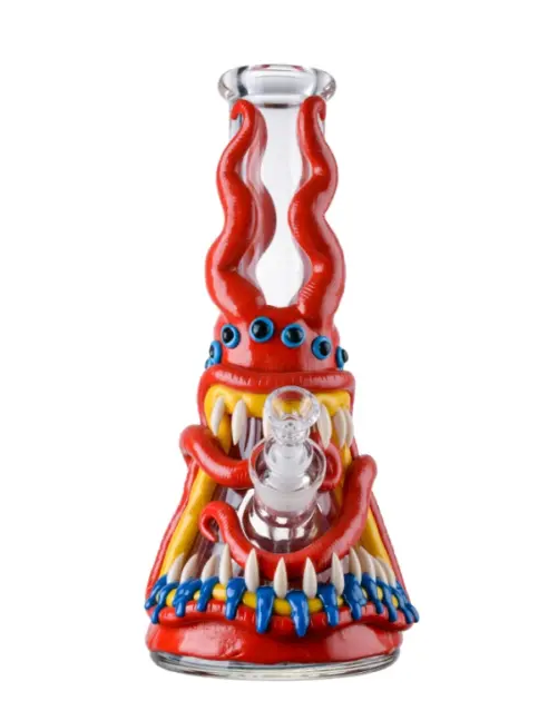 This beaker bong features a monster design to help deliver some spooky smoke sessions. There are also some ice cathers ( ice pinch) on the neck of the glass bong.